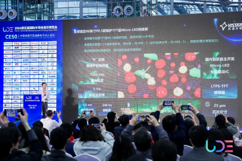 2月27日,在深圳福田会展中心举办的UDE2024第五届国际半导体显示博览会期间,成都辰显光电有限公司副总经理曹轩博士出席了同期召开的“第六届Mini/Micro-LED显示产业生态大会·量产技术”专题论坛,并带来了主题为“玻璃基TFT Micro-LED拼接屏的机遇和挑战”的精彩演讲,引起了行业内外的广泛关注。