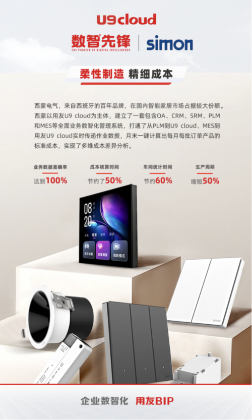 当西蒙电气的开关在亿万面墙上亮起,没人看得见云端的数据也在“合闸”——那条由 U9 cloud 铺就的隐形电缆,把生产效率的提升、管理成本的降低、业务模式的创新直接接入了“未来插座”。